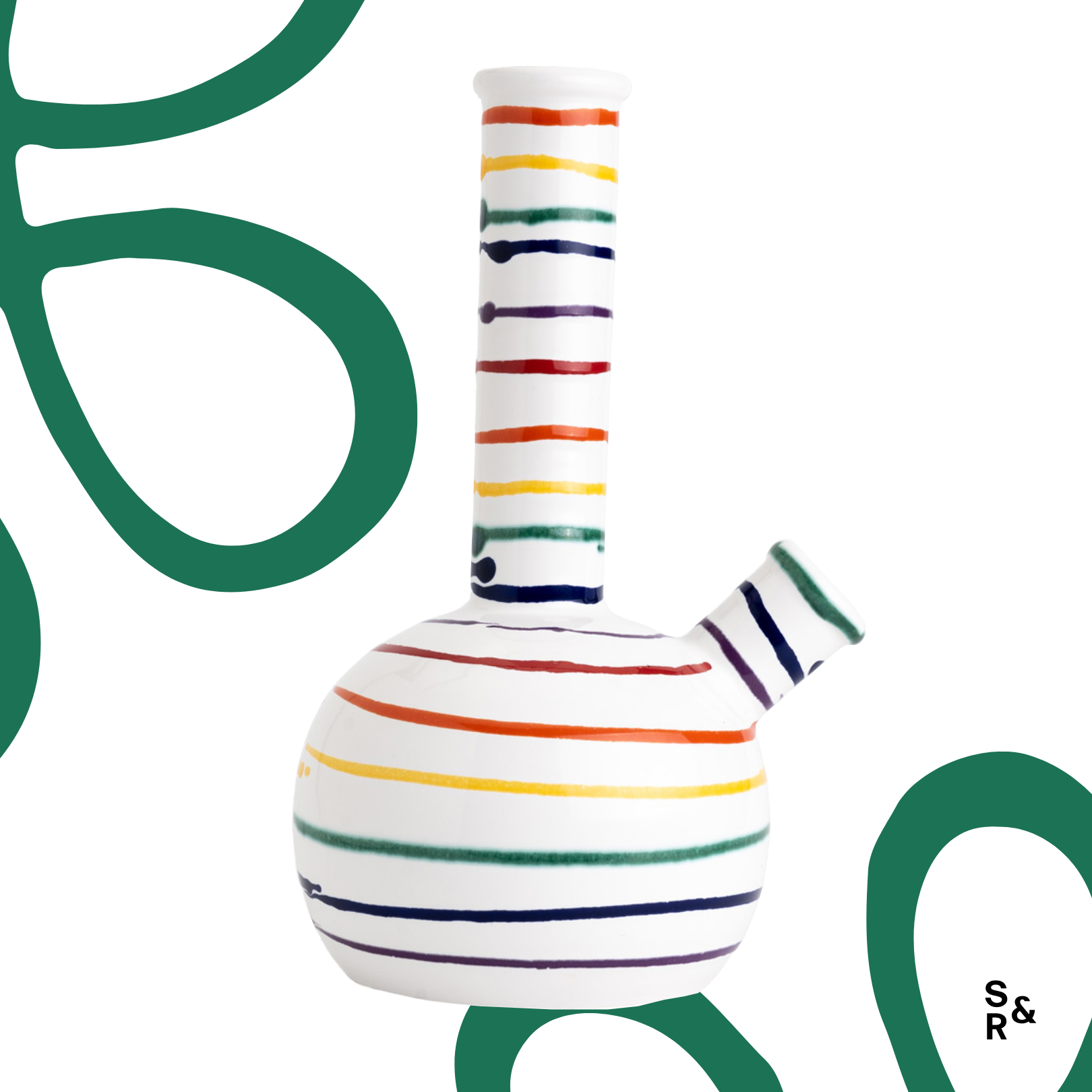 Tja und seit dem 12. Dezember ist es soweit: In der Keramik Manufaktur Gmunden wird neben den traditionell bekannten Tassen, Tellern und Kannen nun auch eine eigene Bong-Kollektion aus Keramik aufgetischt. Die handgefertigten Sonderunikate werden aktuell in 3 Designs gefertigt: „Green Flamed“, „Regenbogen“ und „Alpenblumen“.
